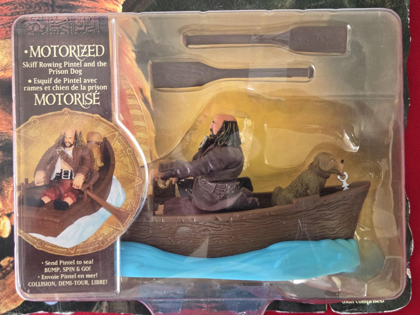 2006 PIRATES OF THE CARIBBEAN, MOTORIZED SKIFF WITH PINTEL AND THE PRISON DOG, MINT IN THE PACKAGE!!!