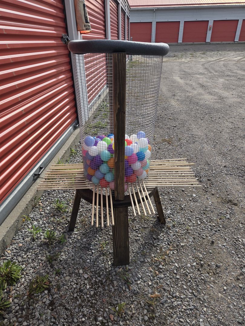 It stands One Metre Tall and is completely Hand Made. If you wish to add more balls, Giggity, you can pick them up on Amazon. So much better than Corn Hole.